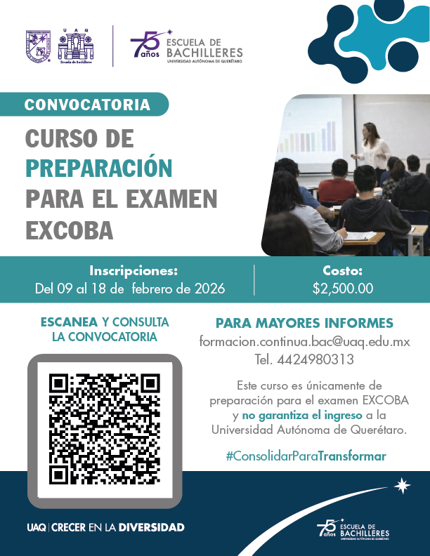 .oculto { display: none; } Responde este cuestionario. Da clic aquí Consulta aquí el Curso de preparación para el examen Excoba 2026